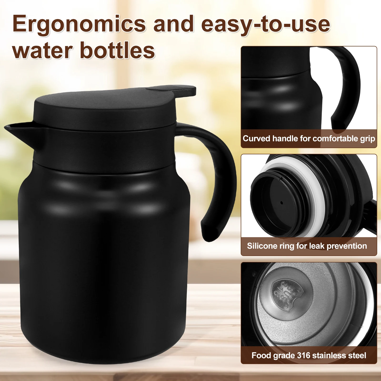 Our thermal tea pot comes with a food-safe silicone ring that is leak-proof, and always locks into place when the water pot is closed, effectively preventing leaks.